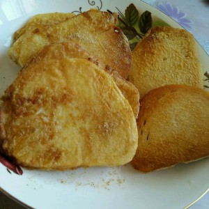 先将馒头切片,一定要凉馒头,因为形状好,而且口感好
