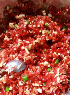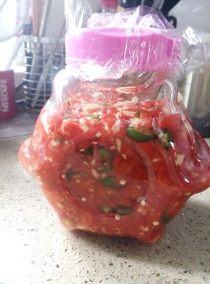 装瓶,压严实,淋上烧酒,盖保鲜膜,拧紧瓶盖。一星期后,可以吃了,不论蒸,炒,炖,熬。绝对增添色,香,味。