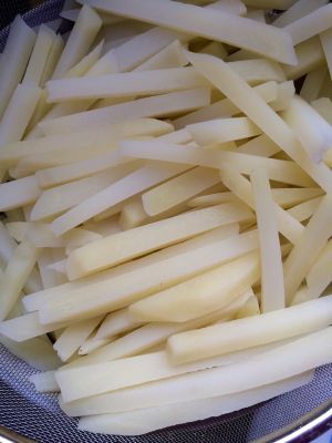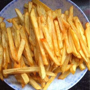炸到发黄就可以捞起了(一般薯条浮起就代表熟了,黄一点起锅是为了好看)