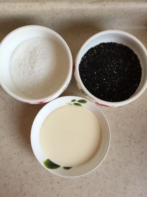 将奶油,牛奶,黑芝麻,盐等除了玉米油的调料称好,准备加入搅拌机里。