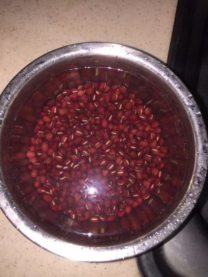 将红豆洗净,泡在无油的盆里,大概6—8个小时就行。