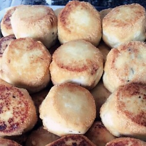 放入油锅煎至表面金黄,不用煎熟。也可放入蒸锅蒸熟。