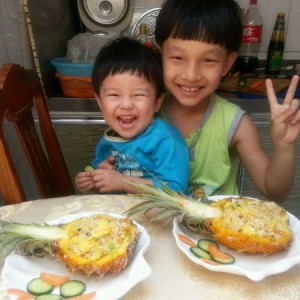 将米饭翻炒均匀以后加入鸡蛋、菠萝丁、香葱,再调入少许精盐鸡粉简单翻炒即可出锅!