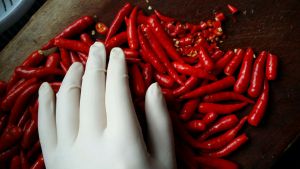 因这辣椒属特辣型……切时最好戴上手套!