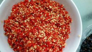 大蒜头、鲜姜切碎