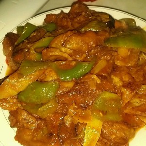 锅底留油青椒,西红柿,茄子翻炒出锅即可。