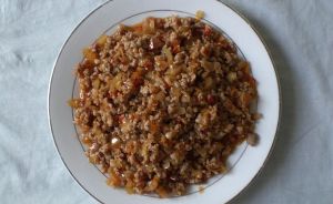 炒锅置旺火上,注入油50克,烧热时放入肉末炒散,精盐煸炒熟。再放入藠头,然后微微放一点盐。
