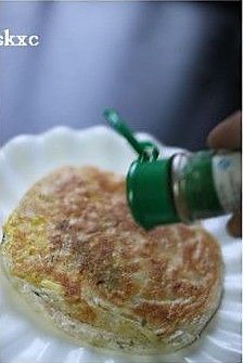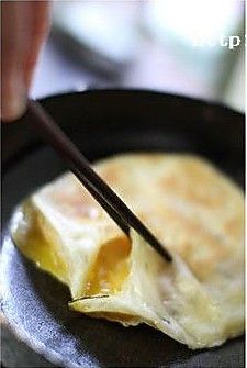 可见饼面金黄,等饼鼓起,用筷子从边缘鼓起处挑一破洞,可以稍大些;