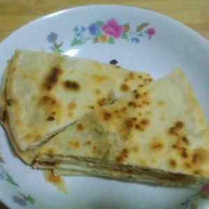 再擀成饼。放电饼铛里开始烙。记得多刷油啊~