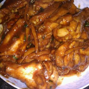 快收汁时,要不断翻炒,不然会沾锅的,最后撒下葱花,就好了,