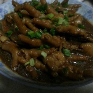 先把生姜大蒜头放点有炒下,然后放水放酱油,在放入鸡爪,水要多放点,鸡爪要烧30分钟以上哦,这样才可以把鸡爪里面所有的胶原蛋白给顿出来哦