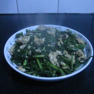 调成大火翻炒几下就可以出锅了,不要炒太长时间,韭菜炒老了很难吃!