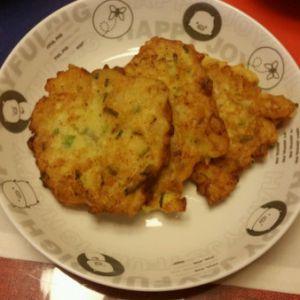 鸡液加入牛奶、糖、食盐搅拌均匀倒入土豆泥中,搅拌均匀,去油锅煎炸