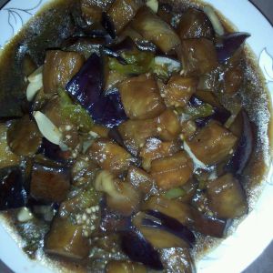 将茄子倒入锅中,个人比较喜欢偏辣口味放入青椒,加入老抽(上色),味达美(提味)不停的翻炒,放适当的盐调小火慢炖,十分钟就差不多了。