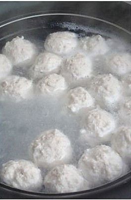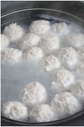 水开后一个一个的将丸子挤入,待丸子全部漂浮即可关火捞出。