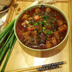 把豆腐放进锅里和鱼一起烧,尽力让豆腐完全进入汤中,烧五分钟左右先把鱼盛出来放盘中,然后中火再烧三分钟豆腐,看汤汁减少就勾芡,连豆腐和汤汁一起浇在鱼上,最后撒花椒粉和葱花就可以了