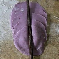 紫薯上蒸锅蒸软,去皮压泥,晾凉。