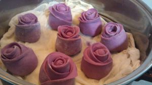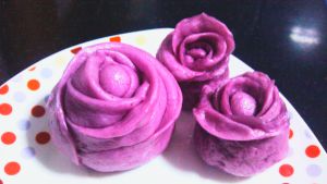 把所有的花朵都做好了后就可以蒸了,蒸锅上汽后10分钟关火,不要立即揭开锅盖,放2分钟后再将玫瑰馒头取出,码盘。