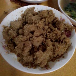 腌制10钟后加入蒸肉粉搅拌均匀后放在锅里隔水蒸20~30分钟,把肉蒸烂。