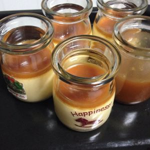 烤盘中放热水,布丁模放入烤盘中,把烤盘放入预热好的烤箱,中层,上下火170℃,烤制25~30分钟,看到布丁表面有焦斑即可(根据模具大小和深浅来调整烤制时间)。