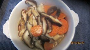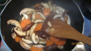 再放入香菇热炒.放一点大蒜粉.盐巴.用水闷一下...