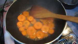放点橄榄油.油热後.放下红萝卜先热炒.