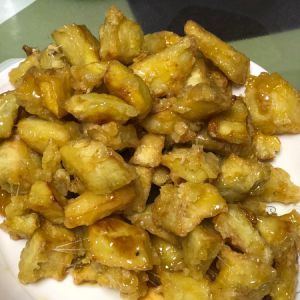 锅入油,6-7成热入地瓜,炸熟,捞出备用!再留锅底油,加入大勺白糖,将糖画成香油色,入地瓜,拔丝出锅!