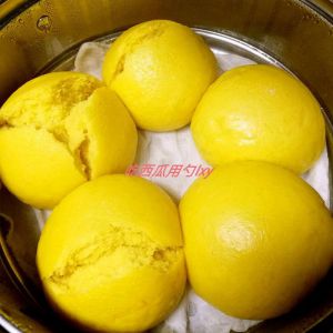 南瓜馒头蒸好了。不知道什么原因竟然开花了。