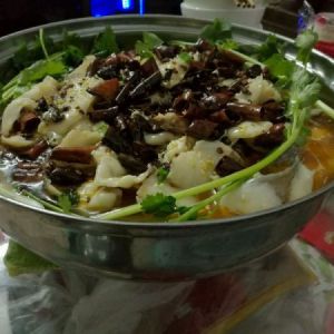 下鱼两边煎一下放盐鸡精,腾出位置把酸菜煸一下。然后放水煮开后,差不多时间就把金针姑放下去煮开后。捞起放盆,留点汤把鱼片放下去煮一白差不多捞盆里。时间自己把握,别太久鱼片老了就不好吃了。最后把辣椒和辣椒油煸热油后,淋上去香香的。