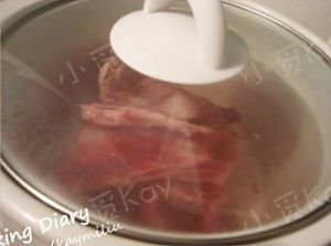前一天晚上将羊骨化冻后放入slow cooker里,加入盐、姜片和少许米酒去腥,加水八成满,开到High档。