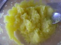 南瓜蒸熟后,用小勺压成泥。