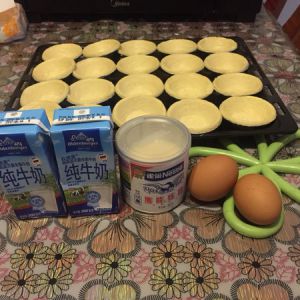 烤箱预热190度十分钟,把蛋挞放进烤箱,二十分钟后出炉。
