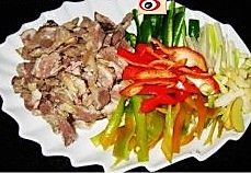 护心肉改刀.尖椒切片.葱姜蒜切丝