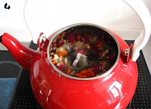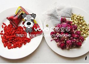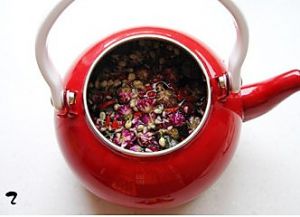枸杞20克、蜜枣2粒、千日红干花15克、茉莉干花10克、红茶包2个、清水1500克。