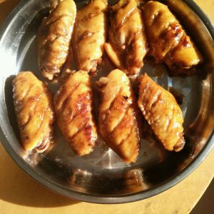 腌制鸡翅。把鸡翅切几道,然后放上酱油和大蒜腌制一会儿。一般我喜欢在腌制鸡翅的时候就放上大蒜,到时候扔进锅里一起炒。