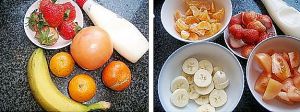 将所有的水果去皮去蒂清洗干净,切成块状,