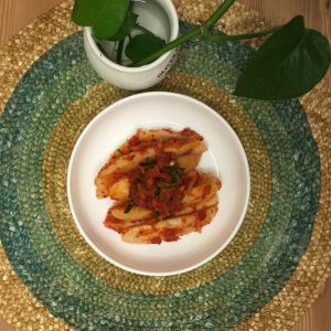 小白萝卜用盐腌制2小时,水洗,沥干水