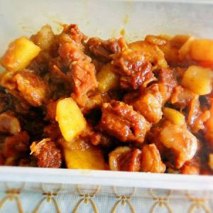 放入老抽,酱油,洋葱,土豆块,十三香,冰糖继续炒