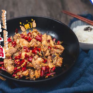 炸鸡肉的油留一半爆香花椒、干辣椒段。