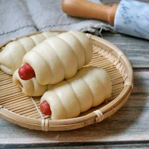 取一份面团搓长(长度大约在热狗肠的2.5-3倍)