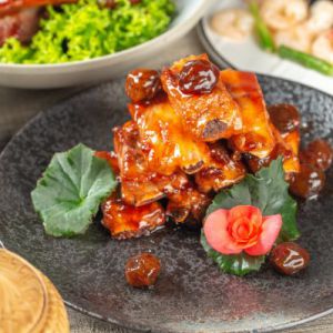 放入炸好的排骨,小火慢炖10分钟,然后大火收汁,装盘即可。