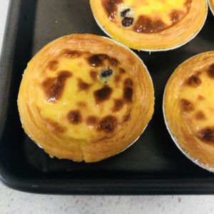 蛋挞皮里面放入蜜豆。或者葡萄干,或者紫薯。根据个人口味。