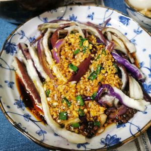 起油锅,若干色拉油,我比较喜欢麻,会放若干花椒,煎香后,将热油浇到茄子上