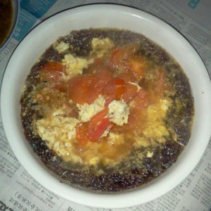 再加一碗水.(番茄依然在锅里)把水烧开.将鸡蛋倒入锅中(顺时针倒入)
