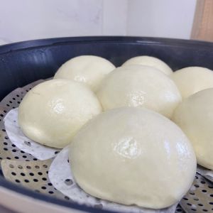 体积变大,手指轻轻按下去回弹的时候就发好了,就可以上锅蒸8分钟,再焖5分钟出锅