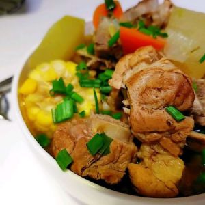 冬瓜切大块,玉米切厚片,胡萝卜切滚刀块,姜切片,葱蒜切末备用