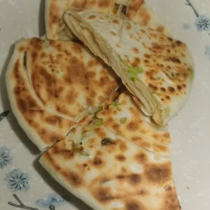 我是用面包机和面的,200毫升热水配400克面粉,加少许盐,一个鸡蛋。烫面就这样简单!一共可以做4张饼。