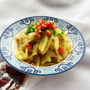 撒上葱花,淋少许麻油这样西瓜皮就拌好了。