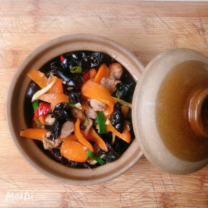 备菜:干木耳泡发,沥水备用;胡萝卜薄片备用