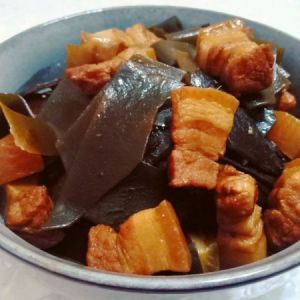 放入提前煮过的海带,海带要提前煮,要不然不容易软烂